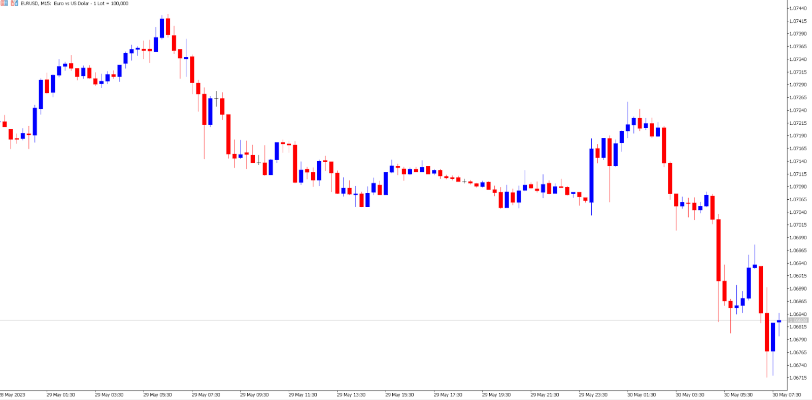 EUR/USD 15-Minute Chart on May 30th