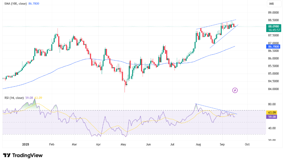 - USD INR Prognose Q4 2025: Die Indische Rupie bleibt im Abwärtstrend, Analysten prognostizieren einen USD/INR-Kurs zwischen 88 und 90 vor Jahresende.