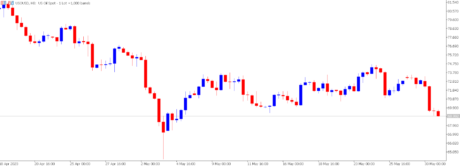 The Dollar is being supported by the Consumer Confidence data from yesterday, which was significantly higher than investors were expecting. Additionally, institutions seem to opt for cash and safer assets as the debt ceiling deal goes to Congress. The risk of an adverse outcome remains. However, most analysts believe the most likely outcome will be positive. In addition to this, the latest reports advise the possibility of another rate hike may be as high as 63%. However, the probability of a 0.25% hike may change depending on this week’s employment data.