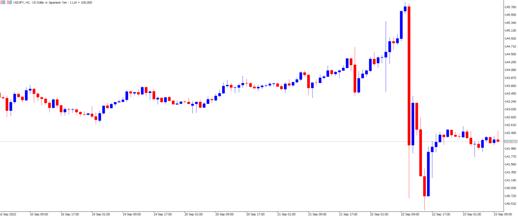 USD/JPY 1-hour chart on September 23rd