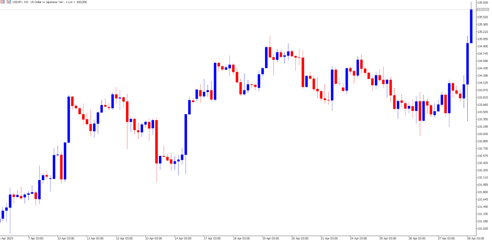 USD/JPY 3-Hour Chart on April 28th