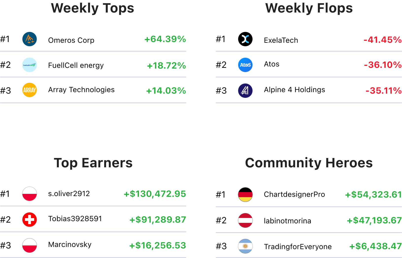 This week, s.oliver2912 closed 51 trades, netting an impressive $130,627.87 in total profit. Their strategy focused on a mix of assets, with the majority of trades centered on $XAUUSD (16 trades), $8TRA (10 trades), and $ETHUSD (10 trades). Notably, significant gains were achieved in short positions on Traton SE, showcasing a sharp ability to capitalize on market downturns. With a balance of metals, equities, and cryptocurrencies, s.oliver2912's diversified approach continues to deliver consistent results. | Omeros Corporation (NASDAQ: OMER), a Seattle-based biopharmaceutical company, saw its stock skyrocket 64% this past week, reaching a 52-week high of $6.95. The surge follows positive third-quarter financial results, with net losses narrowing to $32.2 million from $56 million in the prior quarter, reflecting significant cost management. Strategic milestones, including ongoing FDA discussions for narsoplimab’s Biologics License Application and the advancement of zalunters into Phase 3 trials, have bolstered market confidence. Analysts, such as Rodman & Renshaw, have issued a "Buy" rating, citing robust pipeline potential. Combined with improved financial health and FDA designations, Omeros is well-positioned for potential future growth. |