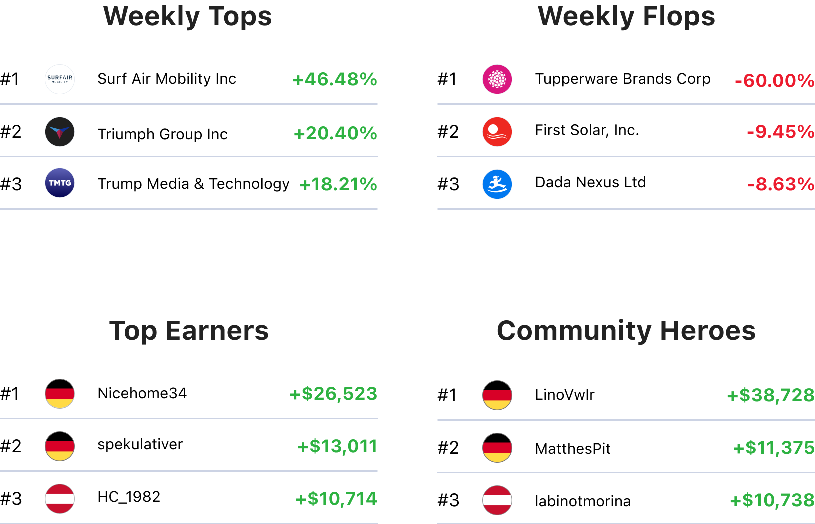 The NASDAQ Navigator. In a week filled with strategic trades, Nicehome34 emerged as a master of the $NAS100 index. | Surf Air Mobility Inc. saw its stock jump by 46.48% over the past week, largely due to a significant investment from Palantir Technologies. |