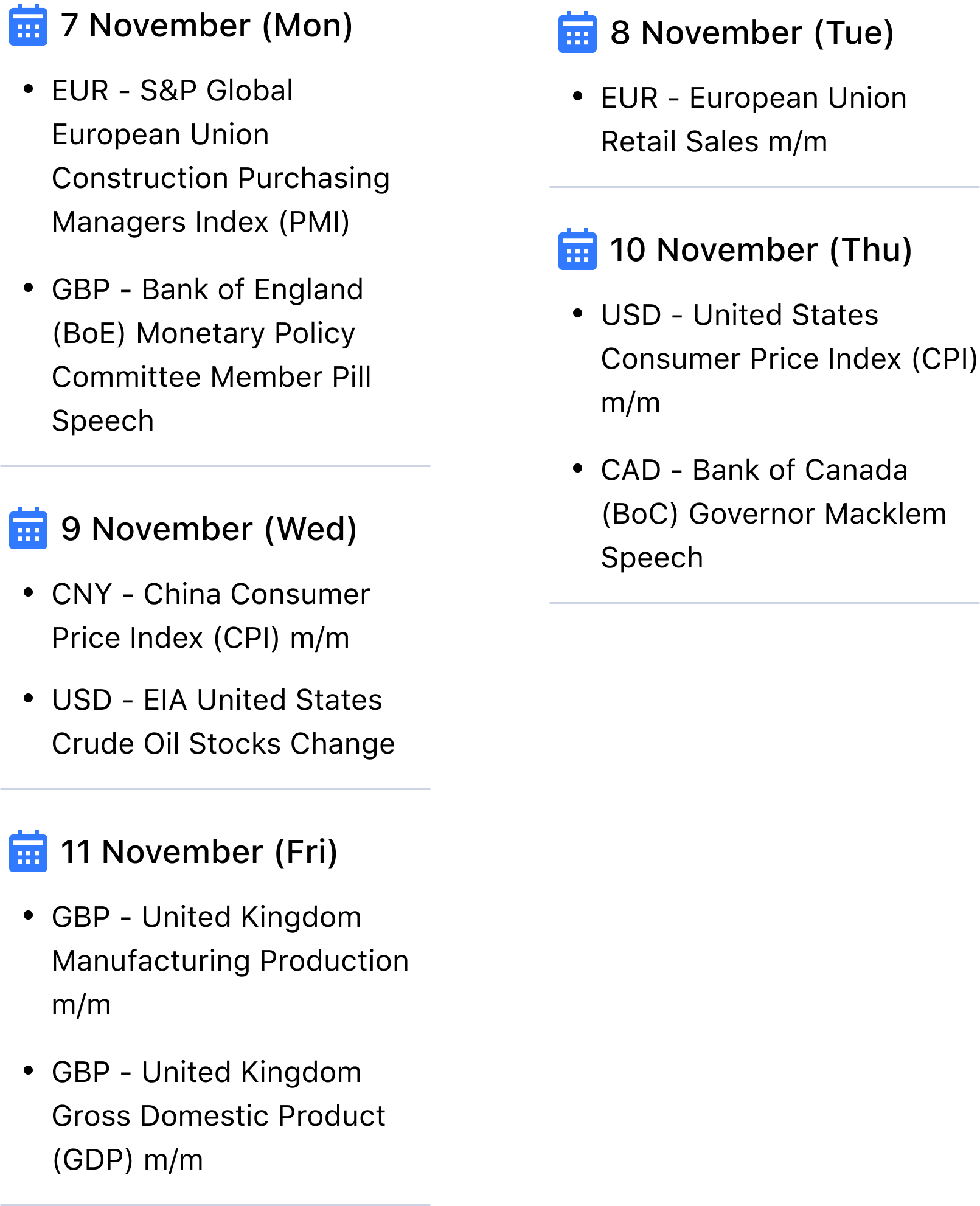Other than that, there were several other key economic events during the week that we would like to focus on: