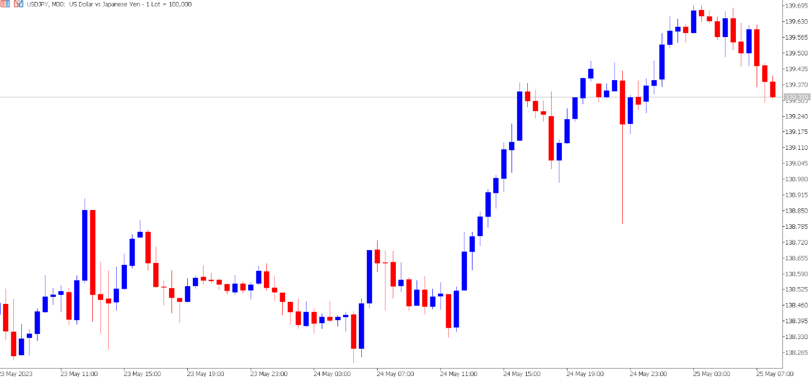 USD/JPY 30-Minute Chart on May 25th